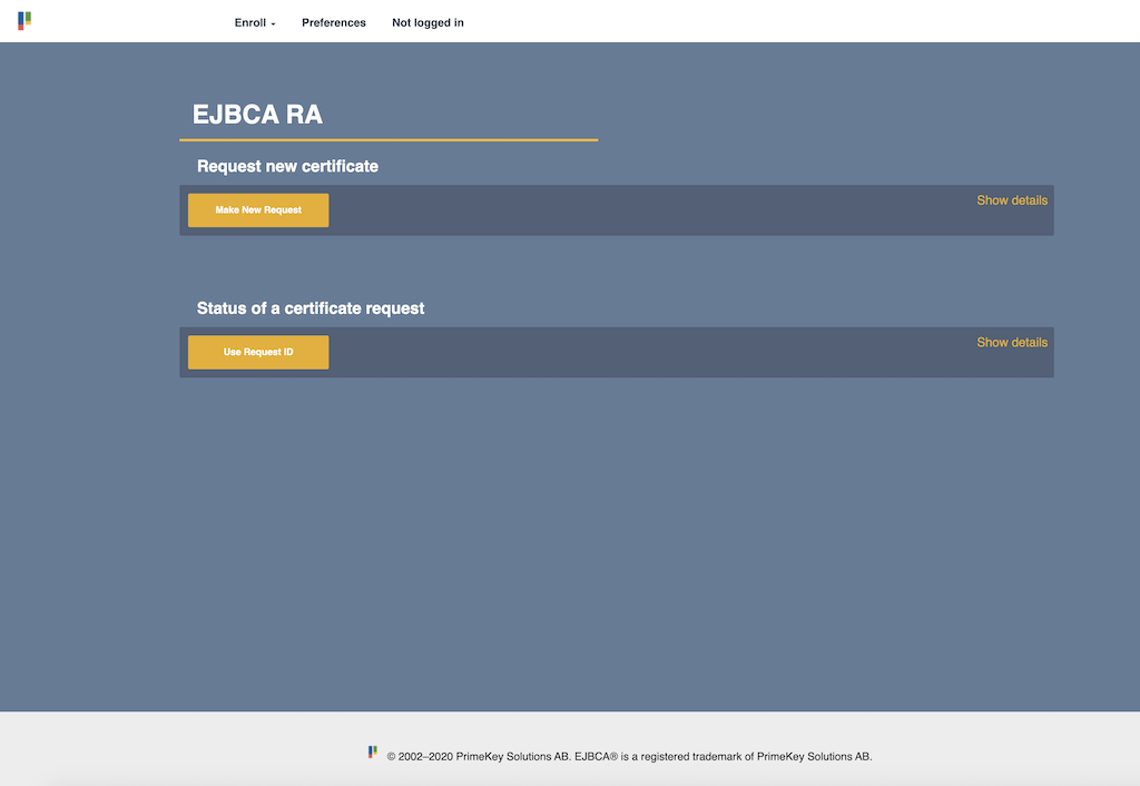 For instructions on setting up the EJBCA RA for public access, see Configure EJBCA for Public Access.
