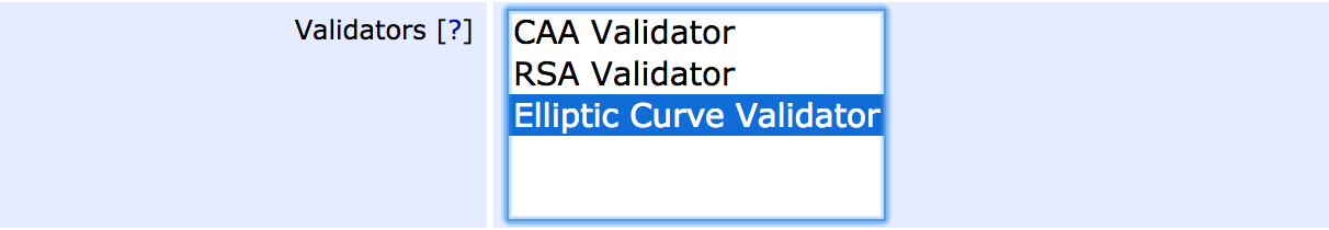 Validators can be created and edited in the CA UI and are chosen per CA for use.
