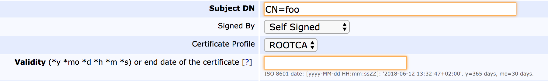 The keys associated with a CA are of no use unless they've been signed, and the result of this signature is the CA Certificate. The certificate can be self-signed (a Root CA), signed by another local CA (making it a Sub CA or Intermediate CA), or signed externally (requiring the generation and signature of a CSR before the CA can be made active). Choosing a certificate profile for the CA will not affect the certificates issued by this CA, but rather the certificates for this CA.