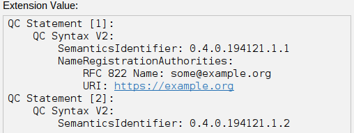 - "0.4.0.194121.1.1,0.4.0.194121.1.3", for the id-etsi-qcs-semanticsId-Natural and id-etsi-qcs-semanticsId-eIDASNatural.