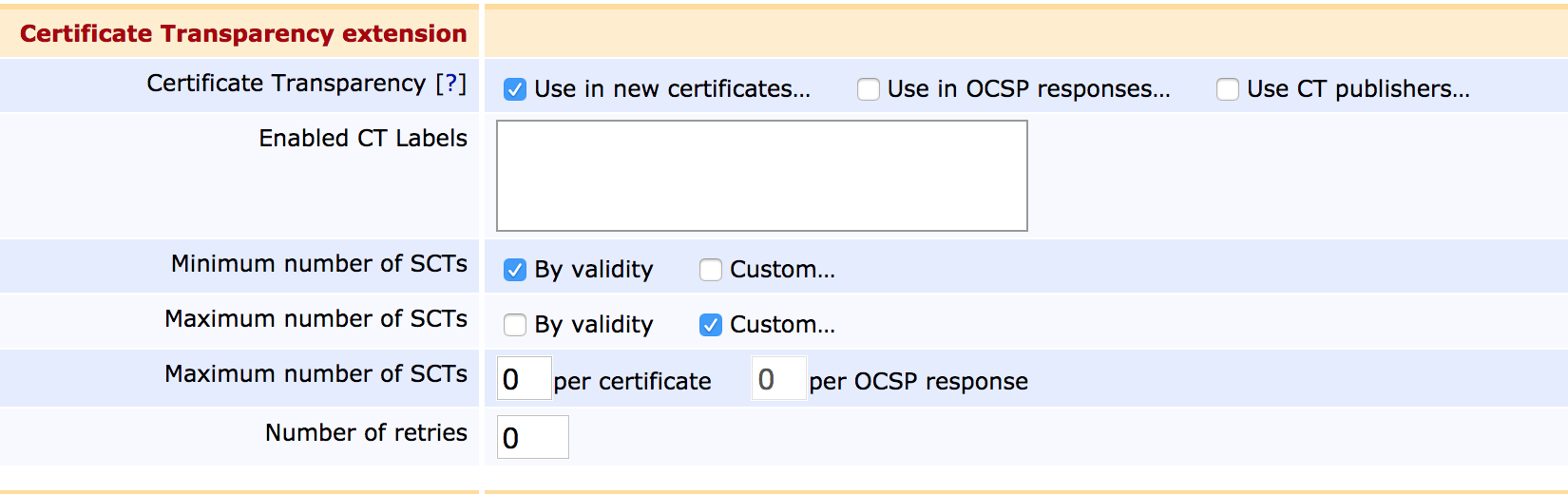 Certificate profiles are also where Certificate Transparency is configured. For more information, see Certificate Transparency or information on the Google's Certificate Transparency project.