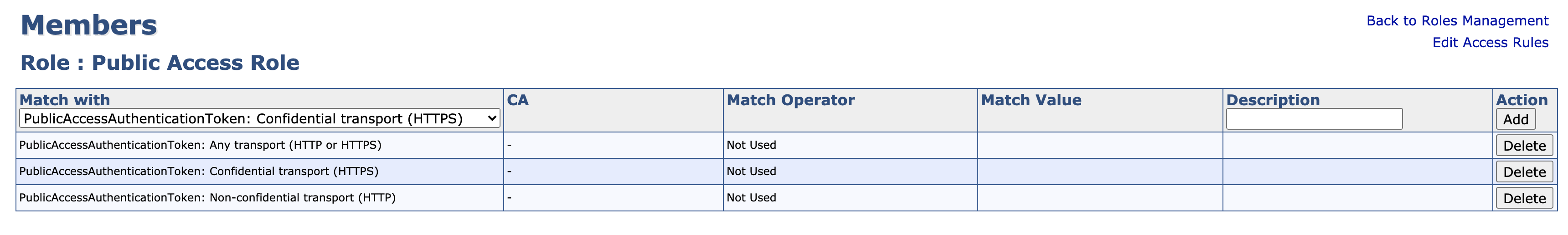 - PublicAccessAuthenticationToken : Any transport (HTTP or HTTPS)