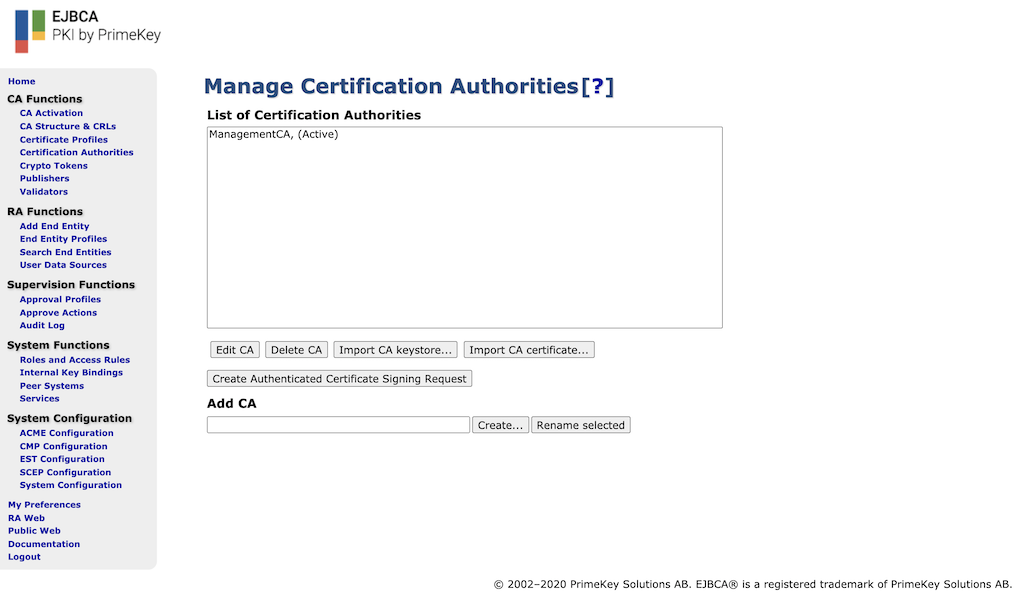 For more general information on managing CAs, see Managing CAs and for conceptional information, see Certificate Authority Overview.