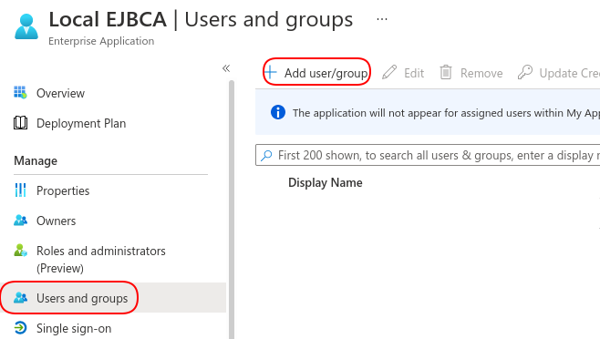 Now that the role has been created and Azure AD is configured to communicate role information to EJBCA during login, the role needs to be assigned to users.