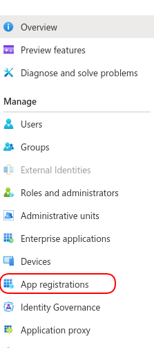 - In the left-hand menu, select App Registrations.