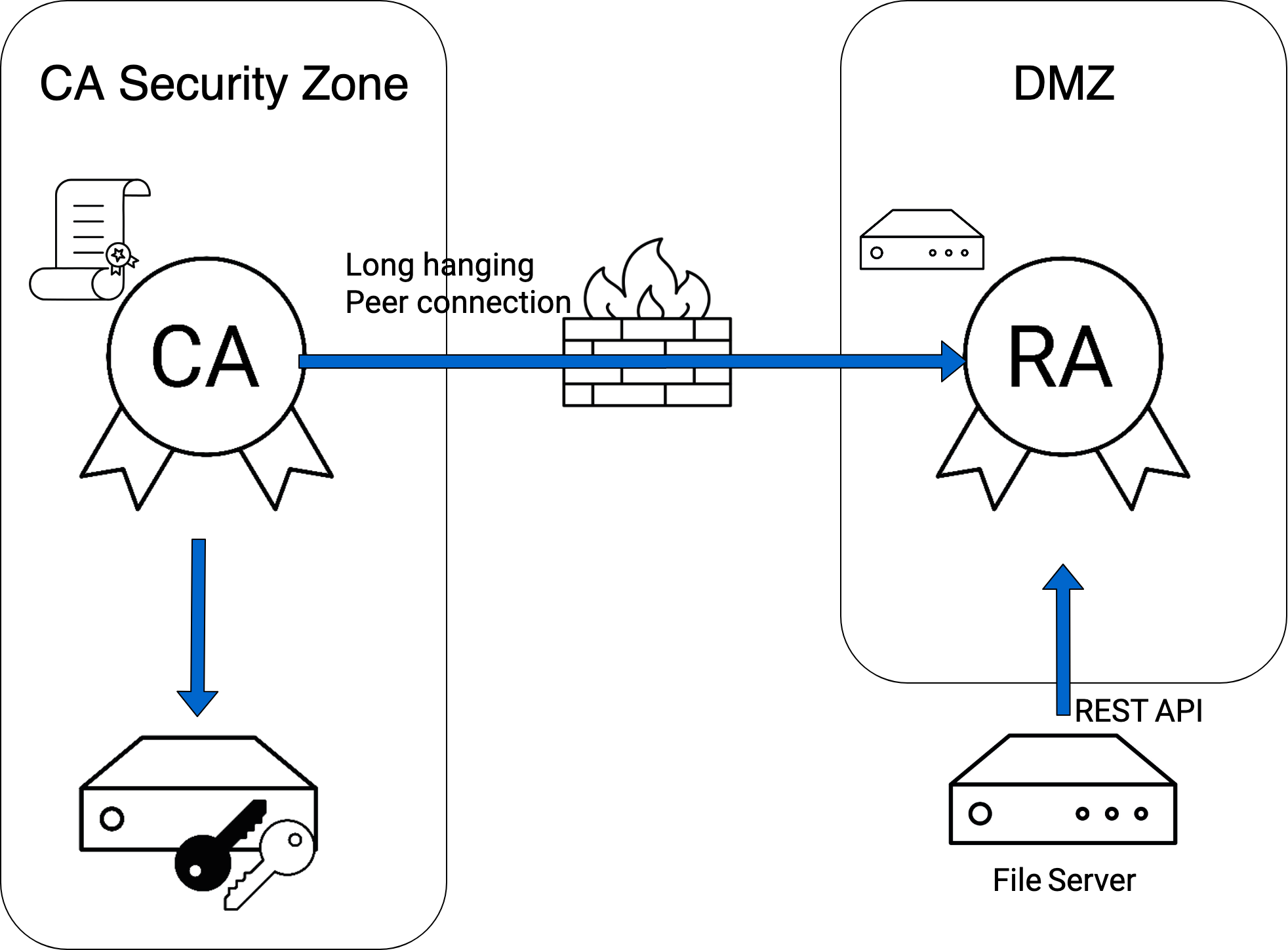 - An RA instance running EJBCA, acting as a proxy between the file server and the CA.
