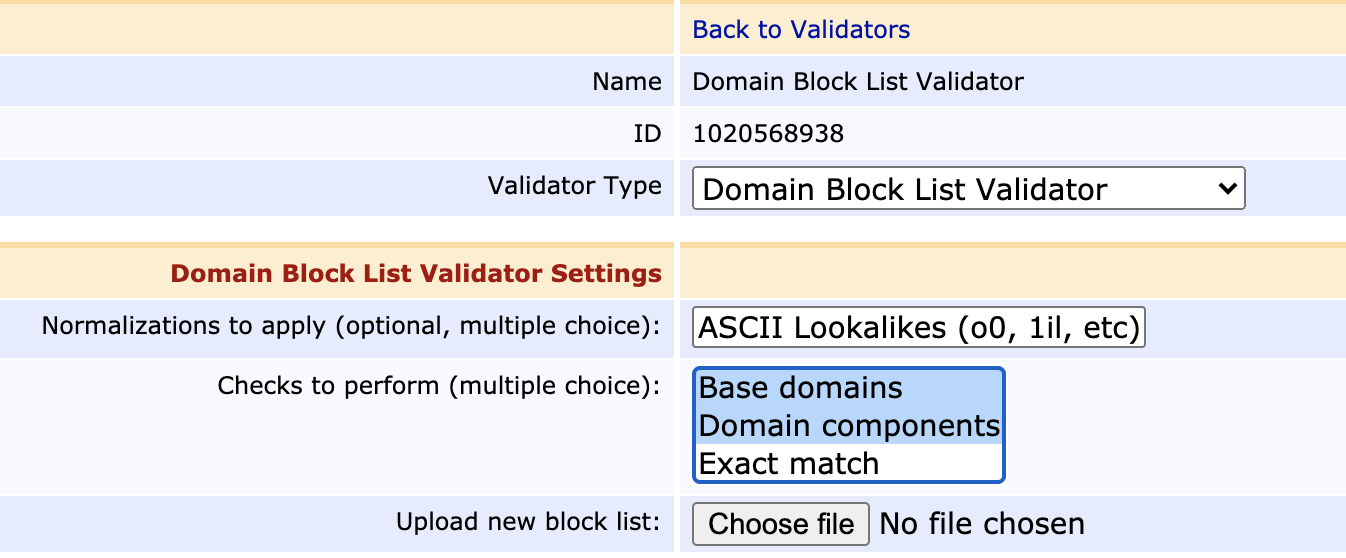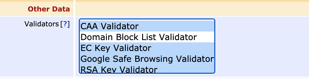 The Domain Block List Validator allows you to upload a list of domains to not issue certificates for, in order to add some assurance to not fall for phishing scams.