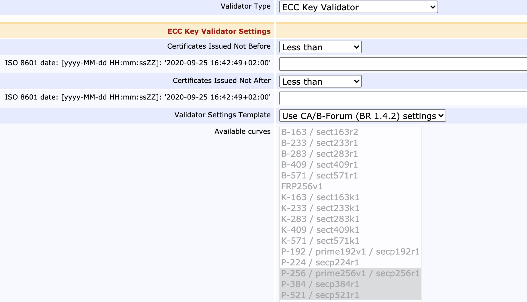 Throughout the issuance process, from a public key being sent in, to the certificate being issued, you'll likely want to ensure that the key you are signing passes basic security checks. You can do this by attaching Validators to your CA configurations.