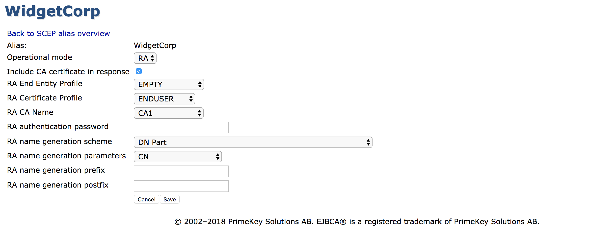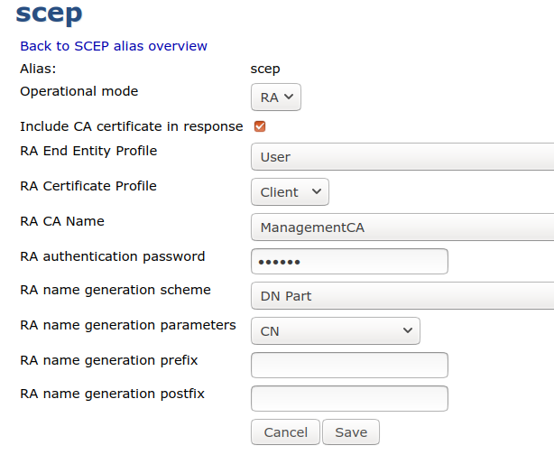 - CGI URL: http://<ra-ip>:8080/scepraserver/scep/<config-alias>/pkiclient.exe