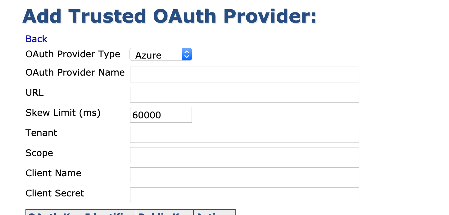 - In EJBCA, go to System Configuration → Trusted Oauth Providers, and click Add.