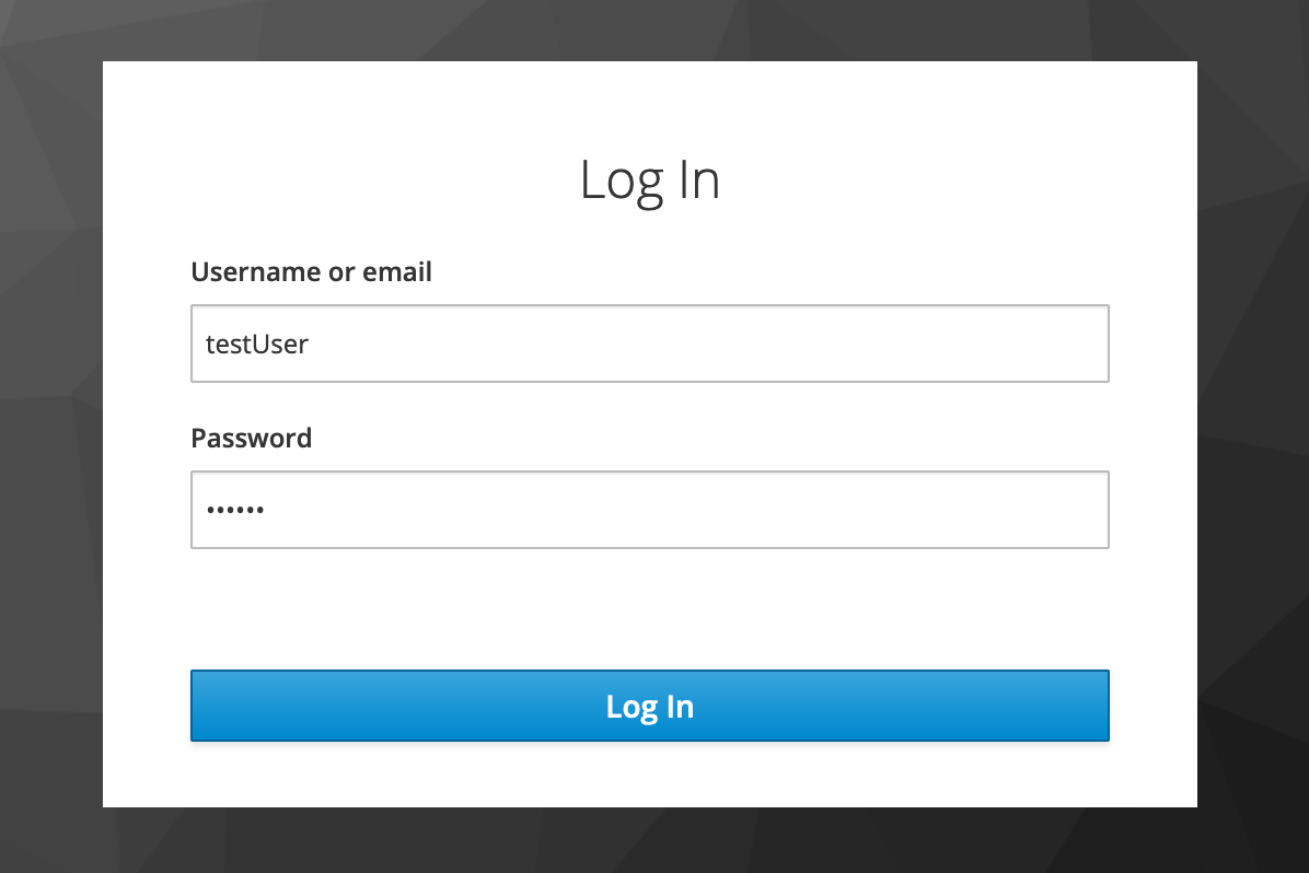 - Click the name of your Keycloak OAuth provider to be redirected to the Keycloak login page.