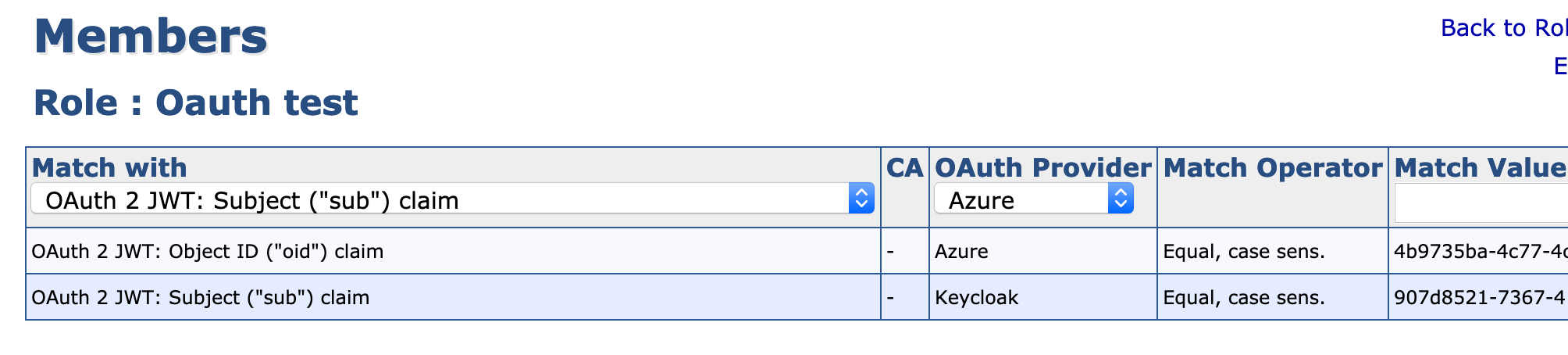 Subject ("sub") claim: As Match Value, use the generated user id (6014419b-3787-4dbd-9825-db1d05b61814).