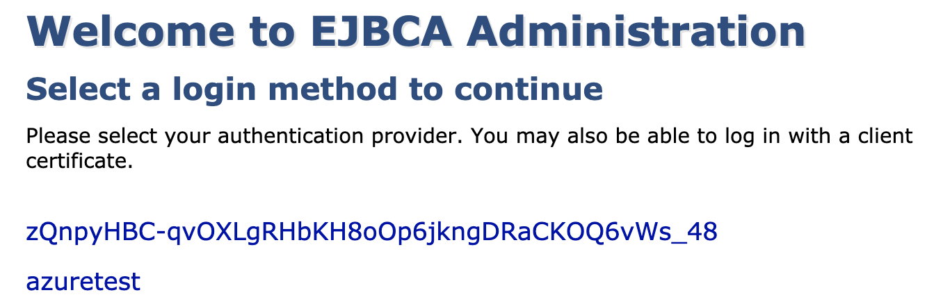 - You are redirected to the EJBCA login page, listing configured OAuth Providers.