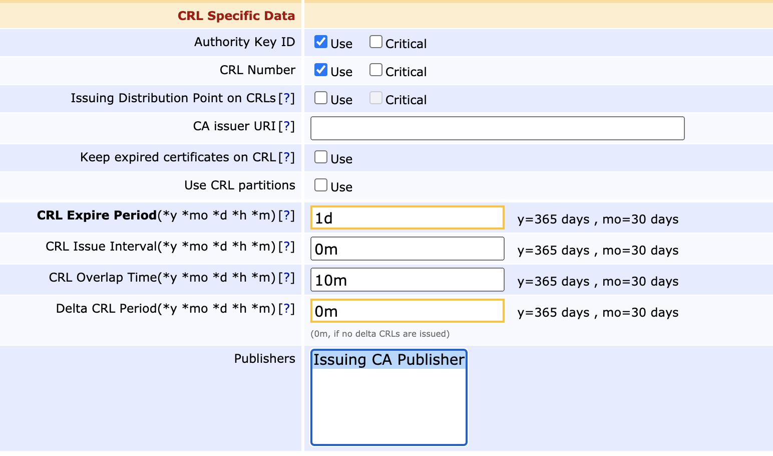 Once the publisher is saved and tested, update the configuration of the issuing CA: