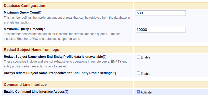 Also note that the scope of redaction is only limited to "org.ejbca", "org.cesecore", and "com.keyfactor" packages. Other libraries such as JBoss ("org.jboss") or Hibernate ("org.hibernate") are known to log the whole request content or database transactions often even at INFO level. They should be explicitly turned off or limited to WARN level.